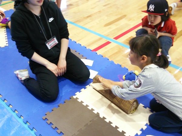 星子ゼミでは、キッズスポーツコースの「支える」をテーマとして5月5日の子どもの日に福岡市立東体育館において、あそびフェスタ『あそび忍ジャーになろう!』のボランティアに参加しました。