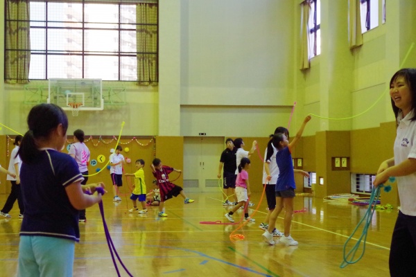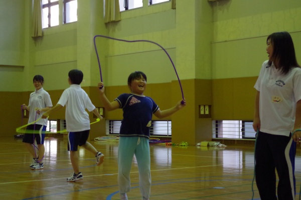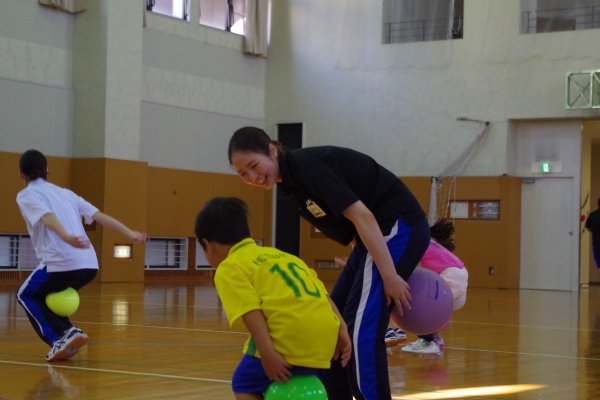 また、学生達にとっても大変勉強になる時間となりました。子どもたちとどう一緒に運動を楽しむか、出来ない運動に挑戦していく子どもをどうサポートするか、身をもって学べる貴重な時間となったことと思います。こういった体験を、それぞれの進路を選ぶ参考にもしてほしいと思います。石見先生、本当にありがとうございました。