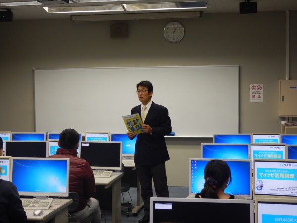 1月11日(木)、株式会社マイナビの野見山様にお越しいただき、就職活動のスタートとしてマイナビ登録を行いました。登録することのメリットや今後の活動などをお話しいただきながら登録作業を行いました。