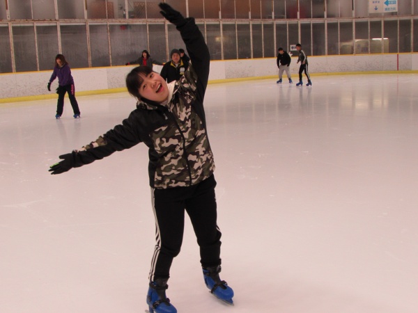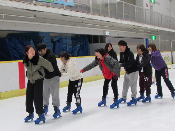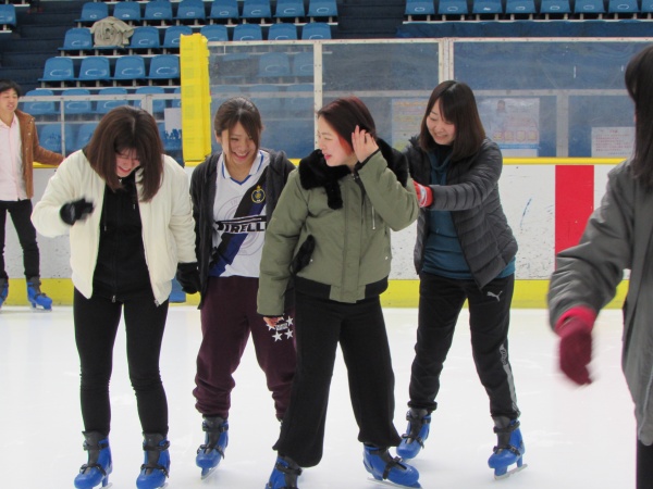 前半は滑走というよりも壁を伝って歩きましたが、45分くらいから次第に壁から離れ、転びながらも、みるみる上達していきました。学生たちは疲れながら「楽しい」を連発して「またアイススケートしたいね」という言葉が飛び交っていました。
