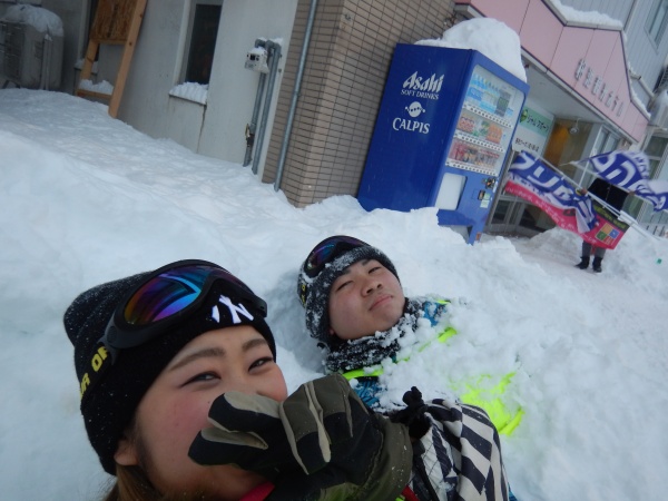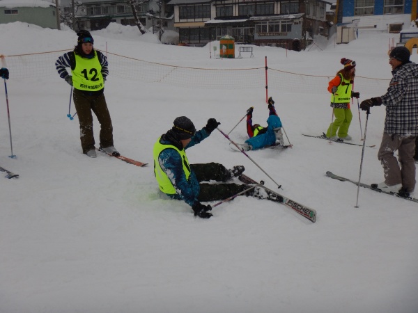 私は初めてスキーをするので松波班でした。初心者コースは板を履くところから始まり、転び方、移動の仕方を習いました。大切なことですが、1日目にしてクタクタでした・・・(笑)小川班は結構滑っていたみたいです!!