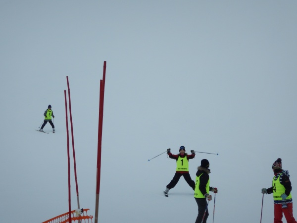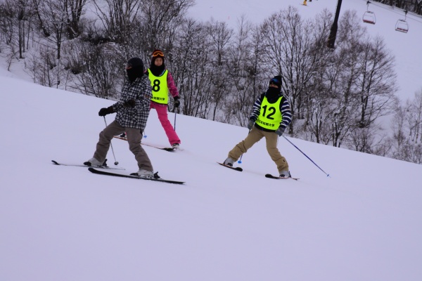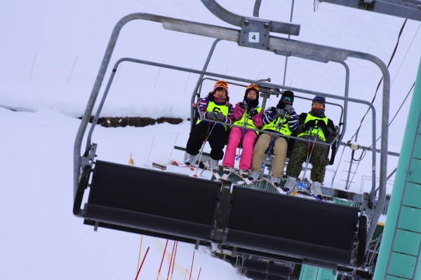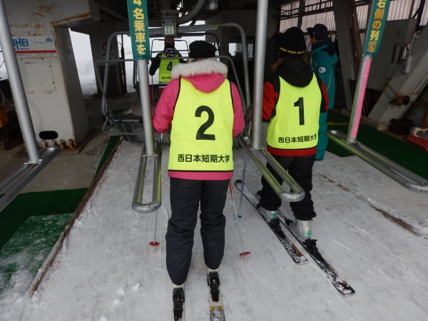 3日目も昨日と同様9時から行われました。初心者コースもだいぶ慣れてきたので、準備体操が終わりリフトに乗り、上に登りました。