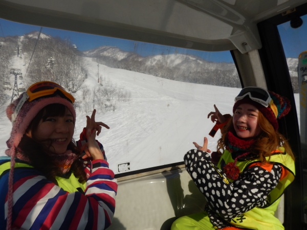 最終日なので1番上まで行こうということになり、全員でゴンドラで登りました。頂上はとても高くて絶景でした~!!