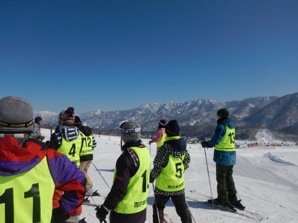 時間もあまり無かったので、降りてきてみんな合流し、何本か滑りました。みんな練習したことを生かそうとしているのですが、M崎くん、N嶋さんだけ直滑降で滑り、少し競技が違う気がしましたが・・・(笑)、全員気持ちよく滑れたみたいです!!