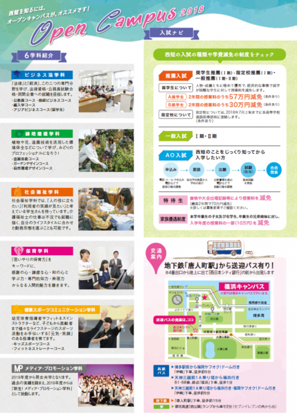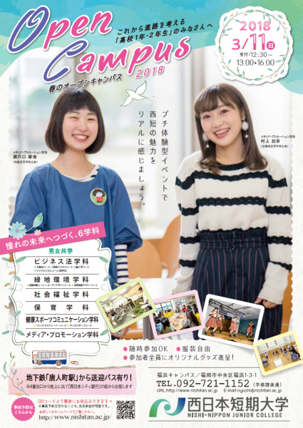 大学ホームページはこちら→http://www.nishitan.ac.jp/opencampus/index.html