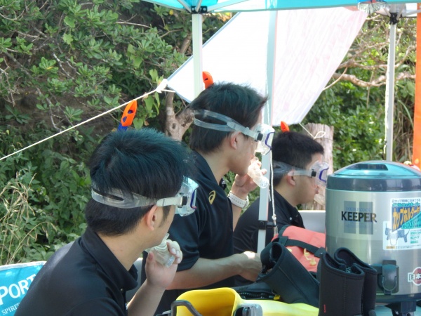 8/21は1日目で、主に海の環境や潜り方について、阿部先生に教えて頂きました。具体的には、海に入る前の心構えや必要な器材、環境変化による海の危険水流といった基本的なことから専門的な技術まで学びました。