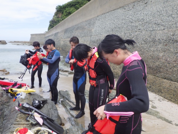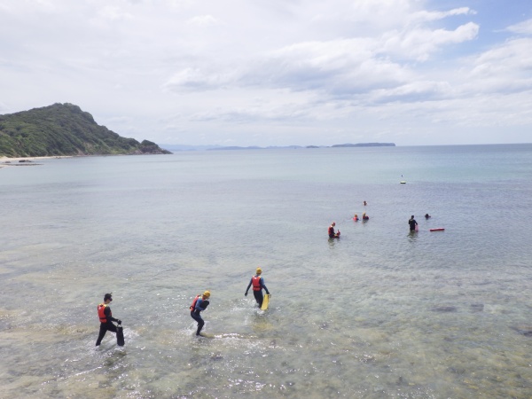 この日から海洋実習が始まりました。予定では長崎県辰の口海岸で行う予定でしたが、台風の影響を受けて福岡県恋の浦海岸での実習に変更となりました。