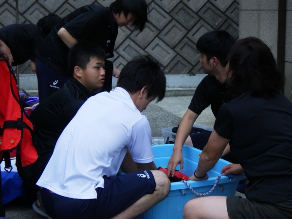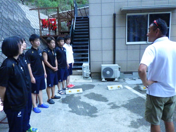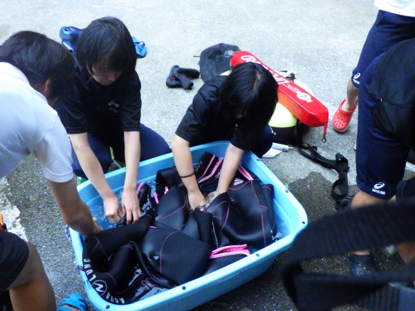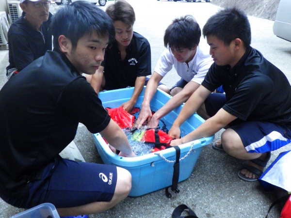 海洋実習後は、長崎県に移動して宿舎で器材洗いの実習と振り返り講習を行いました。