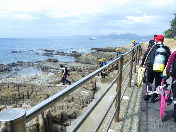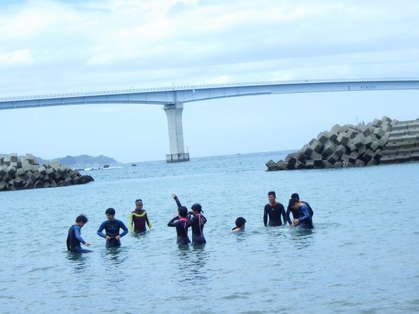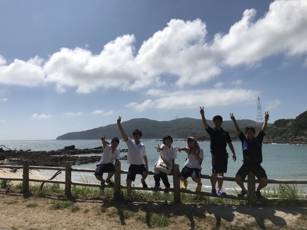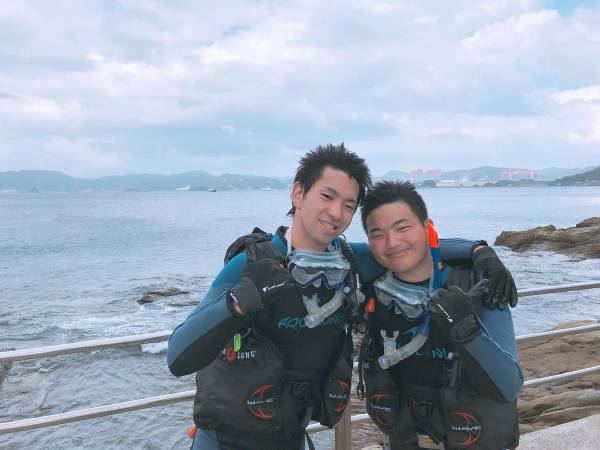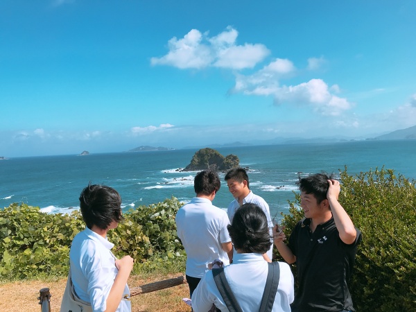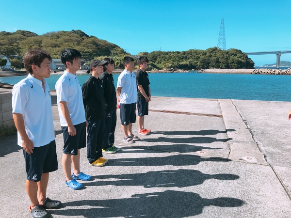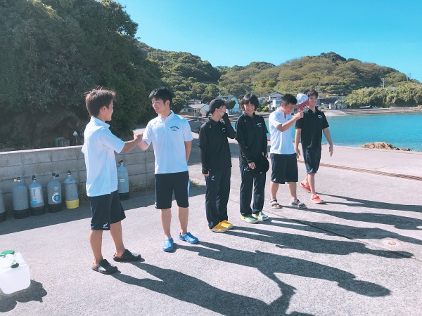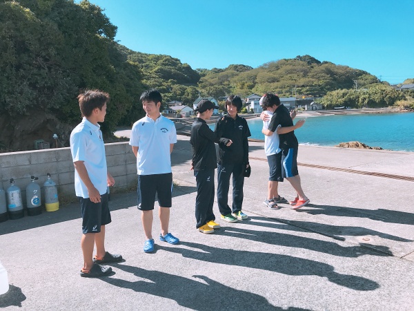今日は近くを台風が通り過ぎた後ということで、波が高く潜ることが出来ませんでしたが、長崎県の軍艦島資料館に行き歴史を学ぶことができました。お昼には自由行動や景色のいいところで撮影会をしたりと、チームでの思い出ができました。そのあとに後日振り替えで行くことになった尻久砂里海岸をみんなで見に行き、気持ちを高めてきました。絶対受かってみせます!!!