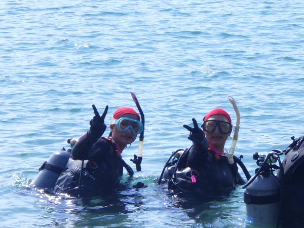 今日は2週間ぶりに潜って、最初は器具の準備やマスククリアなど少しやり方を忘れていたけど、バディが教えてくれて出来たので良かったです。5mまで潜ったのは初めてで緊張したけど、海の中はとても綺麗で楽しかったです!!