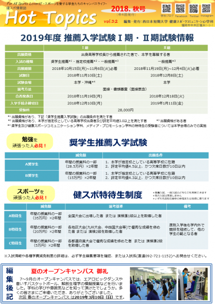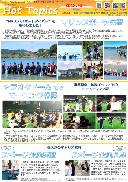 本日は、健スポ情報誌『Hot Topics』発行のお知らせです。