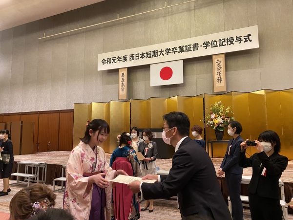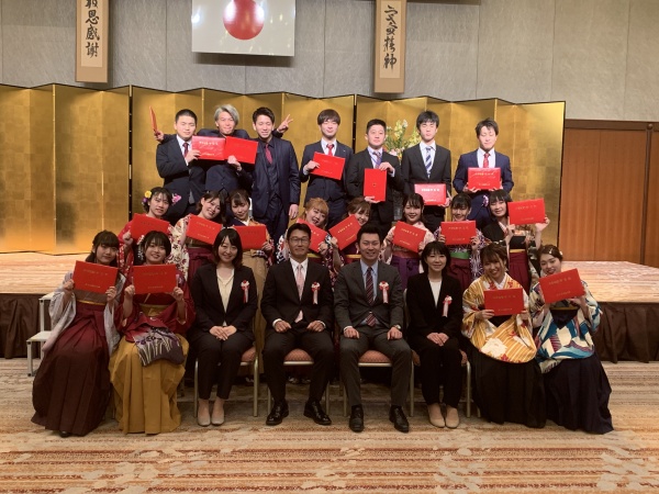 3月19日(木)に令和元年度卒業証書・学位記授与式がヒルトンシーホークにて挙行されました。新型コロナウイルス感染症拡大防止のため、卒業生と教職員のみでの規模縮小、時間短縮での実施となりましたが、無事執り行うことができました。