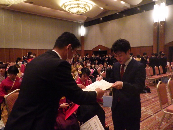 式が終了すると、各学科に分かれ学科長から一人一人に卒業証書が手渡されました。