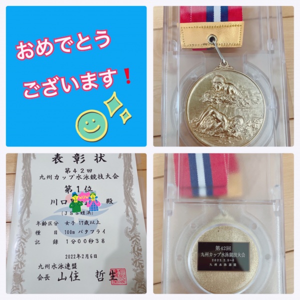 本学科1年生で水泳部所属の川口さん(JSS姪浜スイミングスクール所属、福岡大学附属若葉高等学校出身)が、2月5日(土)~6日(日)に福岡市立総合西市民プールで開催された「第44回九州カップ水泳競技大会」に出場しました。