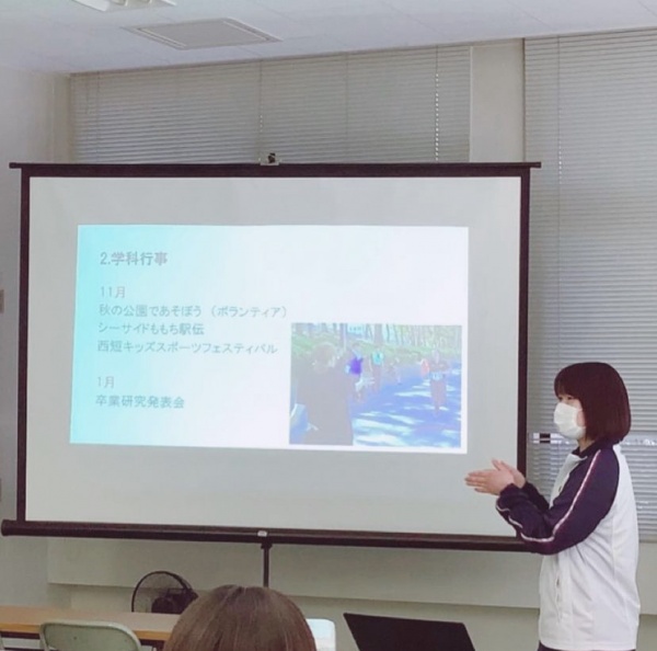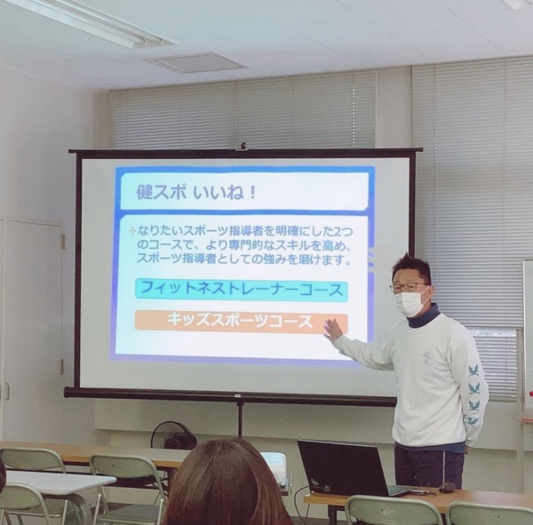 卒業生による学生生活体験談として、2年生の中山さんが健スポの様子や進路について話してくれました!