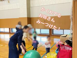 イベント最初の全体あそび(10分程度)は、学生とのかくれんぼや、ボールを使った遊びをしました♪