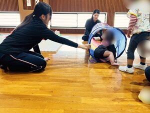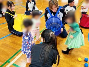 学生スタッフは来場した親子と一緒に運動遊びを行ったり、指導者として運動プログラムを提供して実践力を高めていきます。