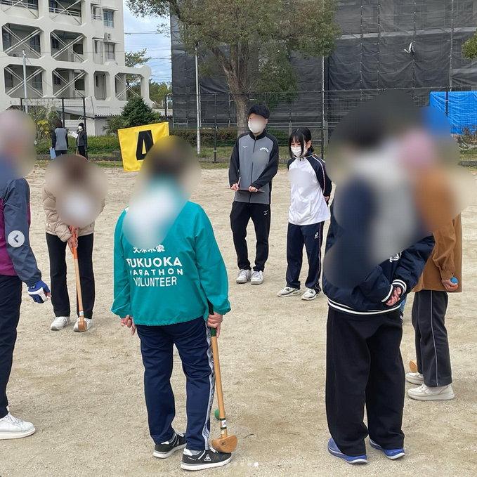 1年生は半期に1回程度、順番に参加し、地域の皆様と交流&運動サポートをしています。